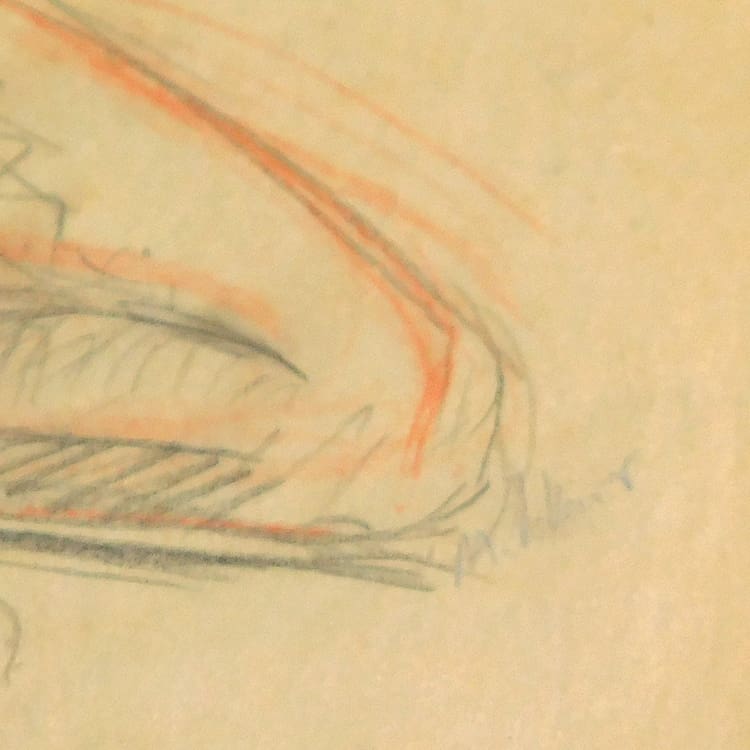 It has come from the archives of the Le Verrier atelier and family. Signed to the bottom corner.