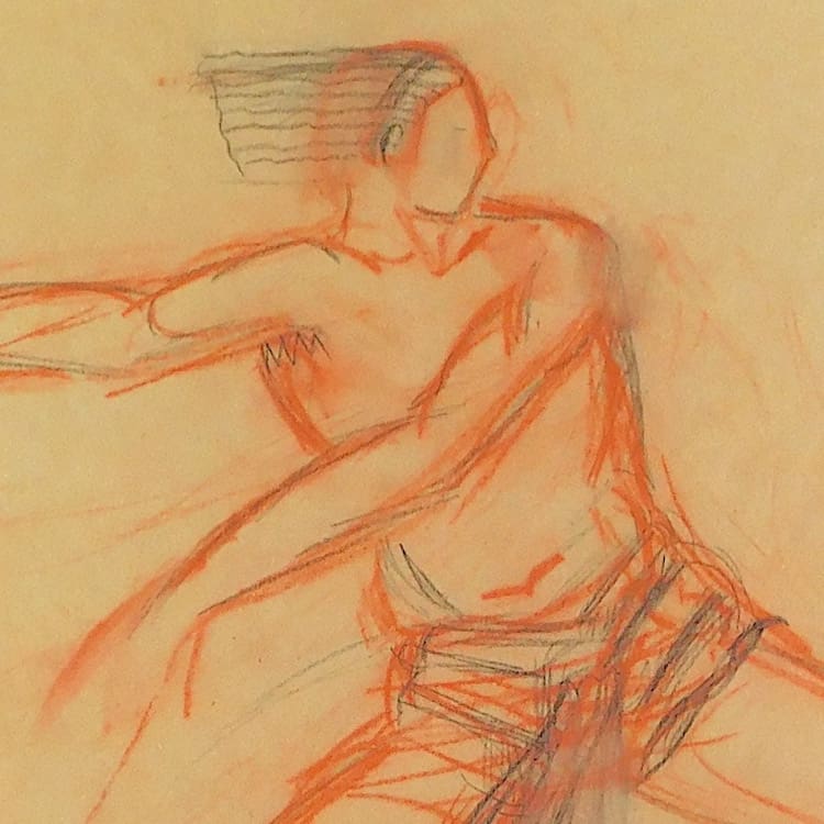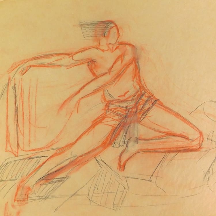 Original art work in pastille and charcoal on tracing paper by Max Le Verrier – a subject design for a statue that never went into production.