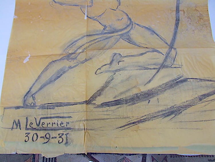 An original art work in charcoal on tracing paper by Max LeVerrier – a subject design for a statue that never went into production. It has come from the archives of the Le Verrier atelier and family. Signed and dated 1931. Creased and torn but still a very important item.