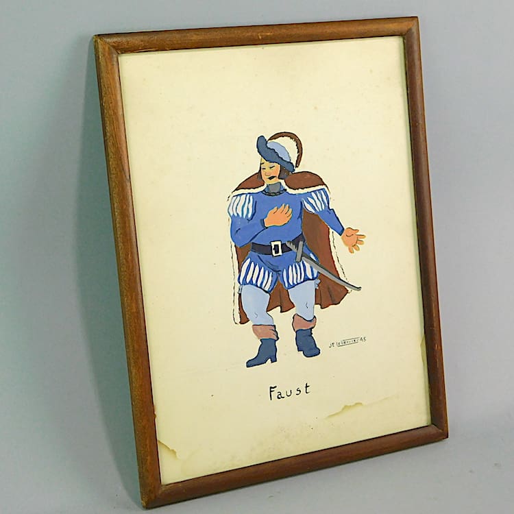 Another work by Jean-Paul Le Verrier, the son of Max Le Verrier. It has come from the archives of the Le Verrier atelier and family. It is signed on the right hand bottom corner and dated 1945 and reads Faust. Mounted in its original wooden frame.
