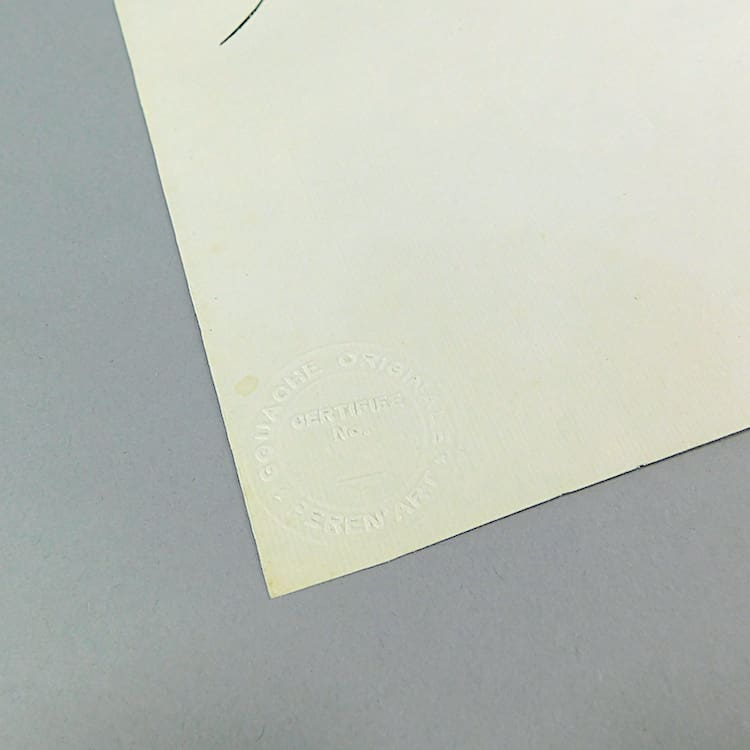 French art deco gouache fashion painting. Beautifully hand painted (this is not a print) and stamped with an impressed mark that reads – Gouache Originale Peren Art. Item is sold unframed.