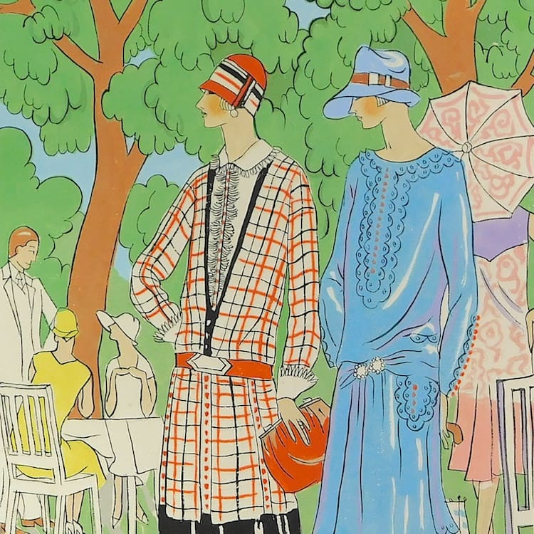 French art deco gouache fashion painting. Beautifully hand painted (this is not a print) and stamped with an impressed mark that reads – Gouache Originale Peren Art. Item is sold unframed.