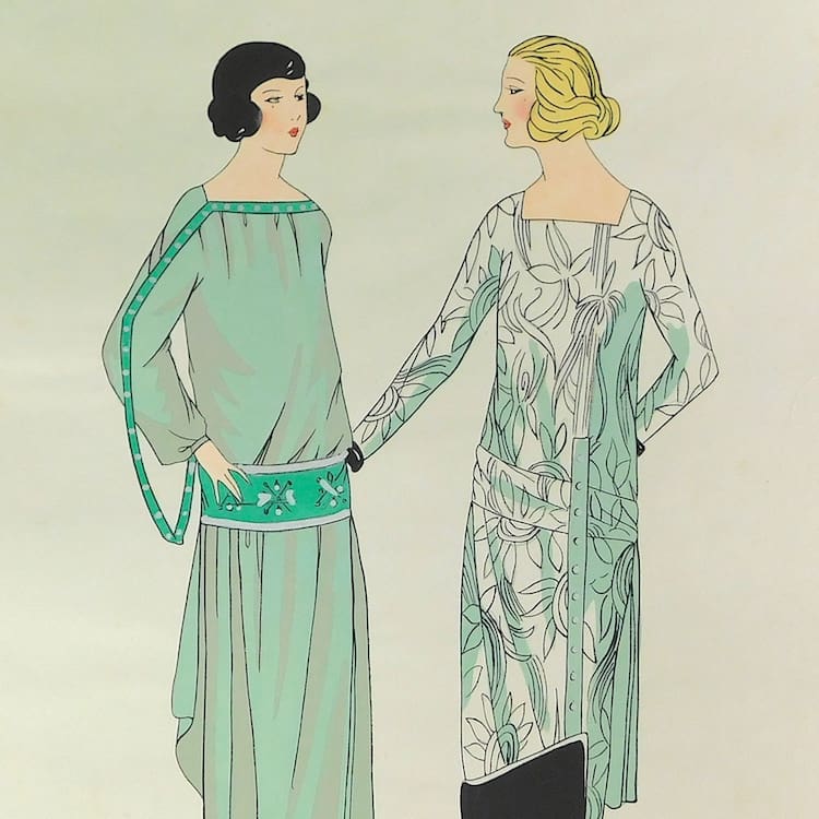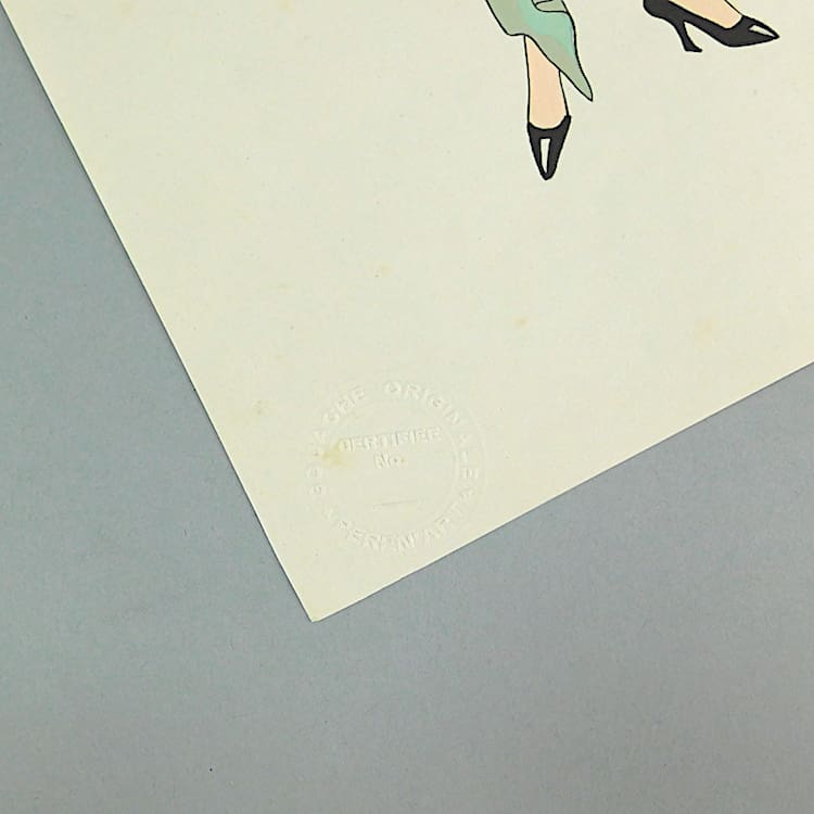 French art deco gouache fashion painting. Beautifully hand painted (this is not a print) and stamped with an impressed mark that reads – Gouache Originale Peren Art. Item is sold unframed.