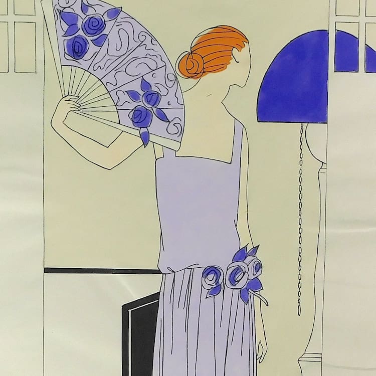 French art deco gouache fashion painting. Beautifully hand painted (this is not a print) and stamped with an impressed mark that reads – Gouache Originale Peren Art. Item is sold unframed.