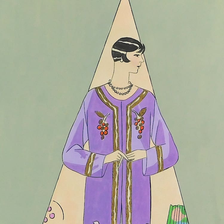 French art deco gouache fashion painting. Beautifully hand painted (this is not a print) and stamped with an impressed mark that reads – Gouache Originale Peren Art. Item is sold unframed.