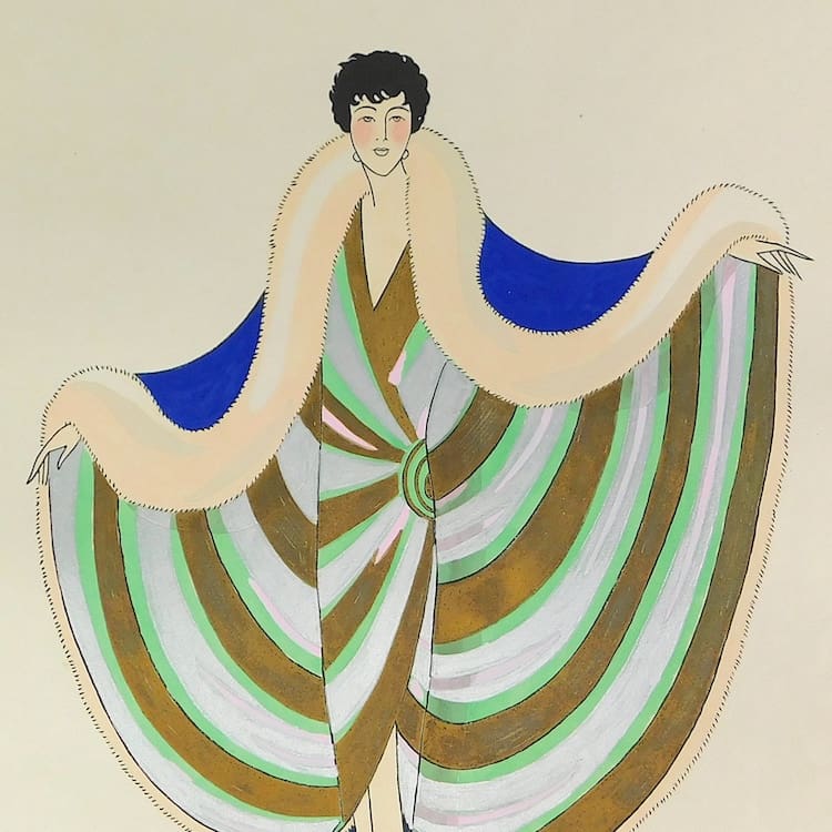 French art deco gouache fashion painting. Beautifully hand painted (this is not a print) and stamped with an impressed mark that reads – Gouache Originale Peren Art. Item is sold unframed.