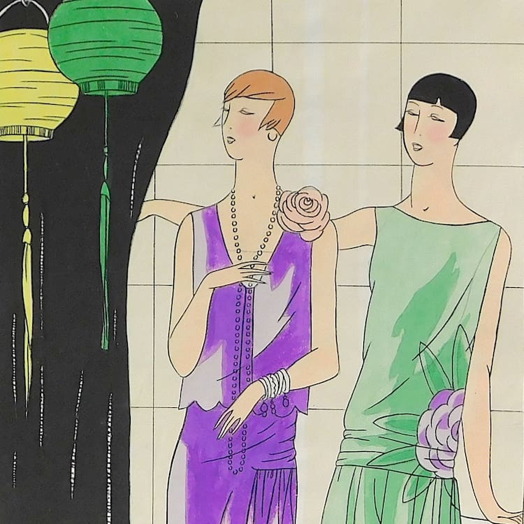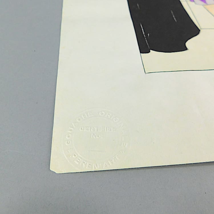 French art deco gouache fashion painting. Beautifully hand painted (this is not a print) and stamped with an impressed mark that reads – Gouache Originale Peren Art. Item is sold unframed.
