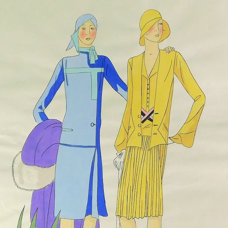 French art deco gouache fashion painting. Beautifully hand painted (this is not a print) and stamped with an impressed mark that reads – Gouache Originale Peren Art. Item is sold unframed.