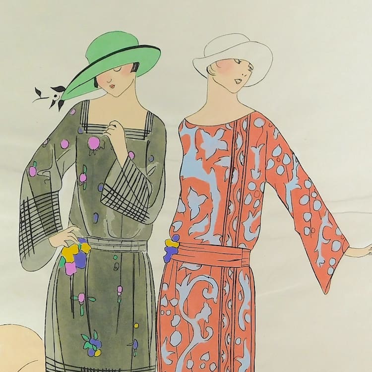 French art deco gouache fashion painting. Beautifully hand painted (this is not a print) and stamped with an impressed mark that reads – Gouache Originale Peren Art. Item is sold unframed.
