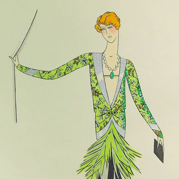 French art deco gouache fashion painting. Beautifully hand painted (this is not a print) and stamped with an impressed mark that reads – Gouache Originale Peren Art. Item is sold unframed.
