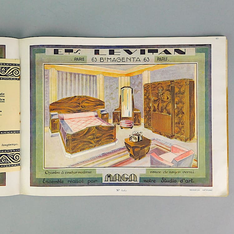 Original French Mueble Leviatan (Furniture) catalogue. Dating to the 1920s/30s. Showing all household furniture from bedroom suites to mattresses, Buffets and chairs. It has 124 pages with drawings and designs.