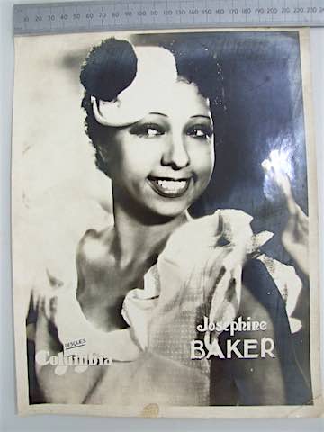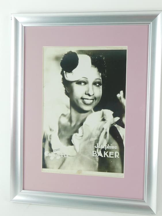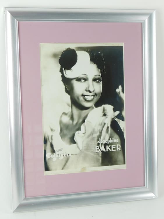 An original art deco advertising photo for Columbia Disques showing Josephine Baker. Dates to the 1920s. Mounted in a contemporary silver wood frame.