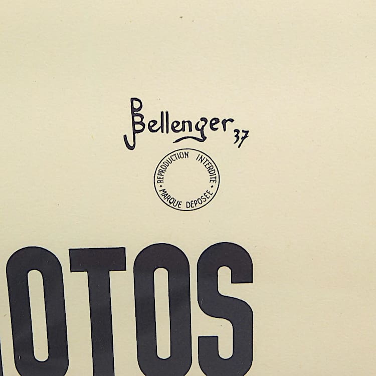 De La Belle Mecanique Cycles favor motos origninal poster in a contemporary black wooden frame and protected by perspex. Signed P. Bellinger and marked Paris.
