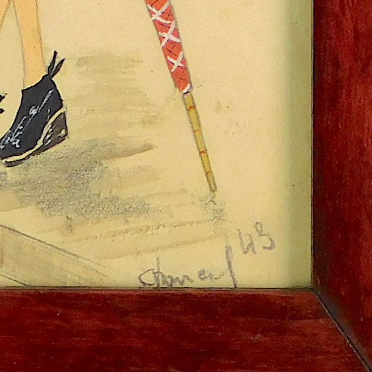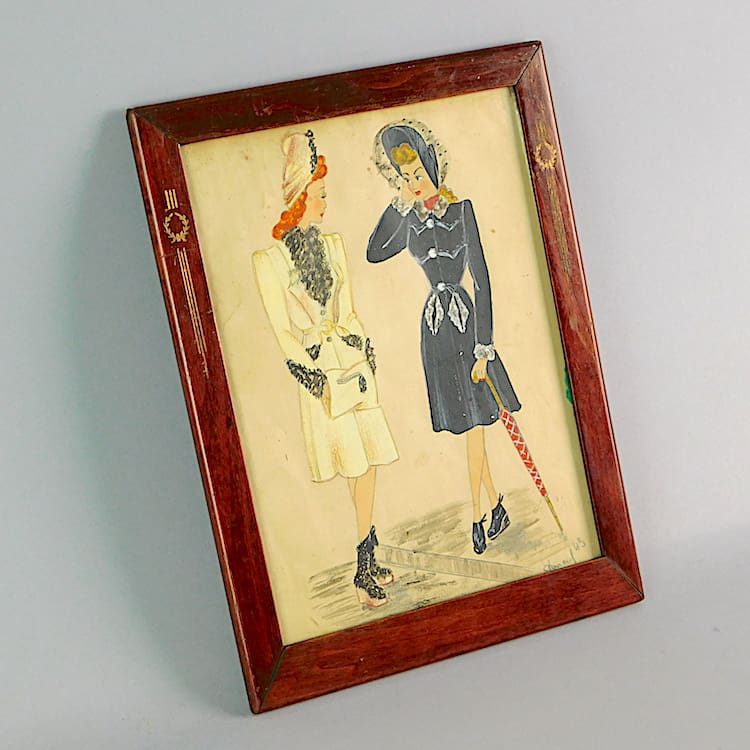 Wonderful 1940s French watercolour mounted in its original old wood frame. Signed in the corner and dated 1943, but the signature is indistinct.