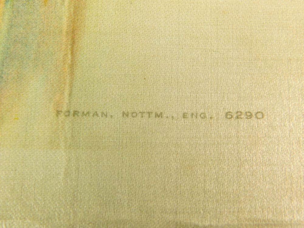 There is a slight tea staining to the edge of the silk which would not show when framed.