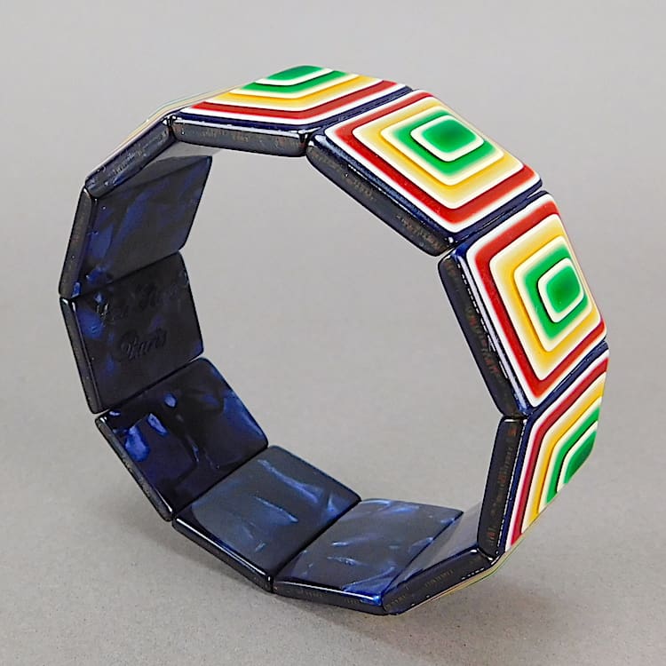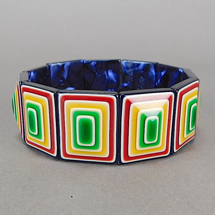 French Lea Stein panel bracelet with elasticised panels.