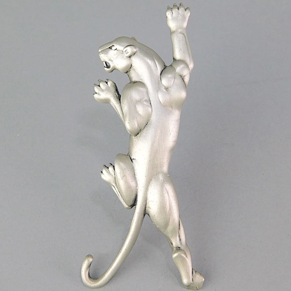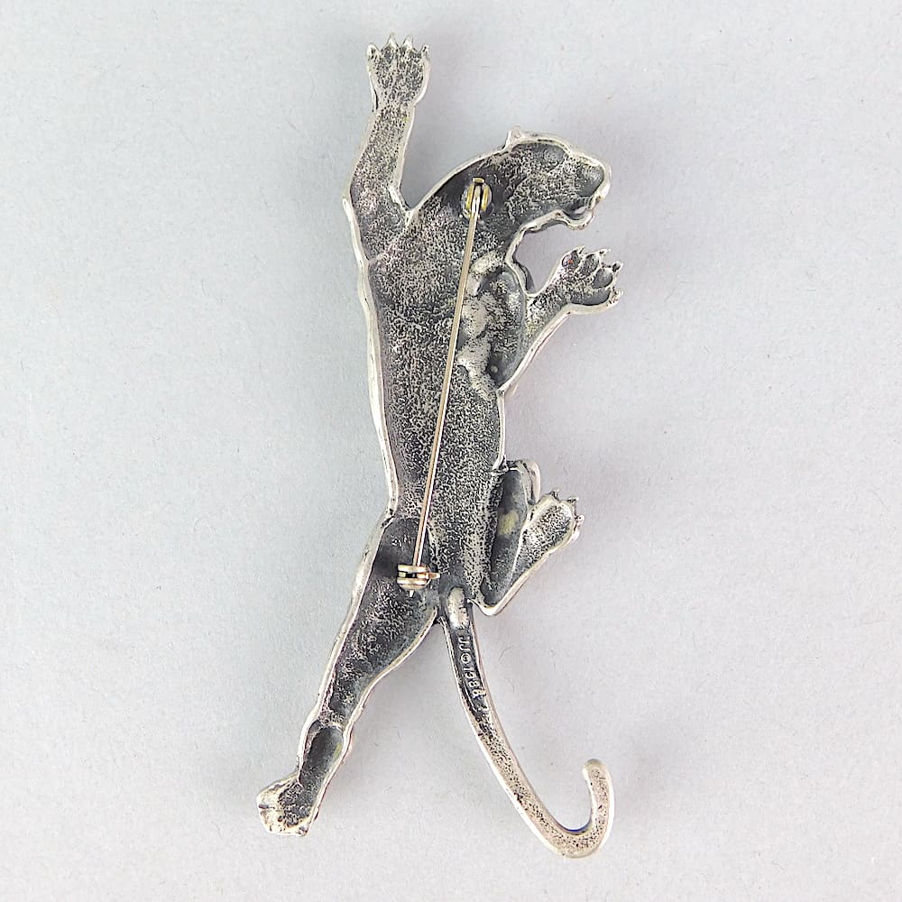 Large Panther brooch with pewter finish, signed JJ and dated 1988. Fitted with a roll safety clasp.