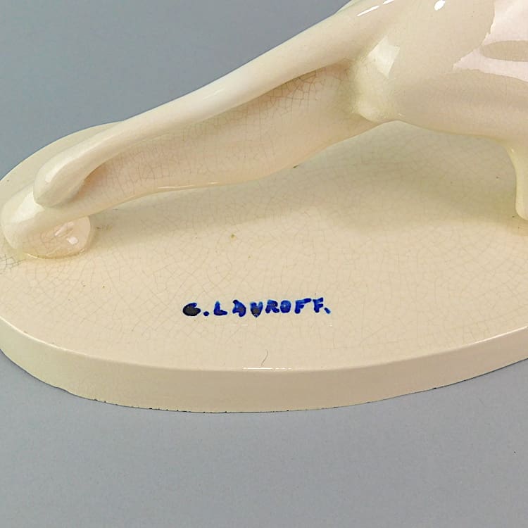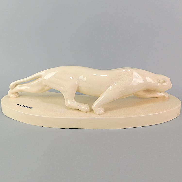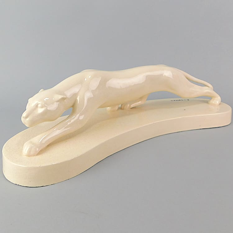 French cream crackle glaze art deco ceramic panther by Georges Lavroff (1895 – 1991).