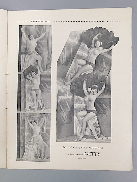 Mainly featuring nudes and semi nudes and costumed female dancers from the Follies Berger. Probably very saucy in their day.