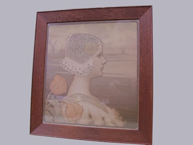 Vintage Art Nouveau lithograph by the French artist Paul Emile Berthon (1872 – 1909) a contemporary of Alphonse Mucha. Its full title is Sa Tres Gracieuse Majeste La Reine Wilhelminel and depicts the Dutch Queen, Wilhelmine. It was produced in limited editions in 1901. Mounted in its original oak frame from new with its original framers label to the reverse.