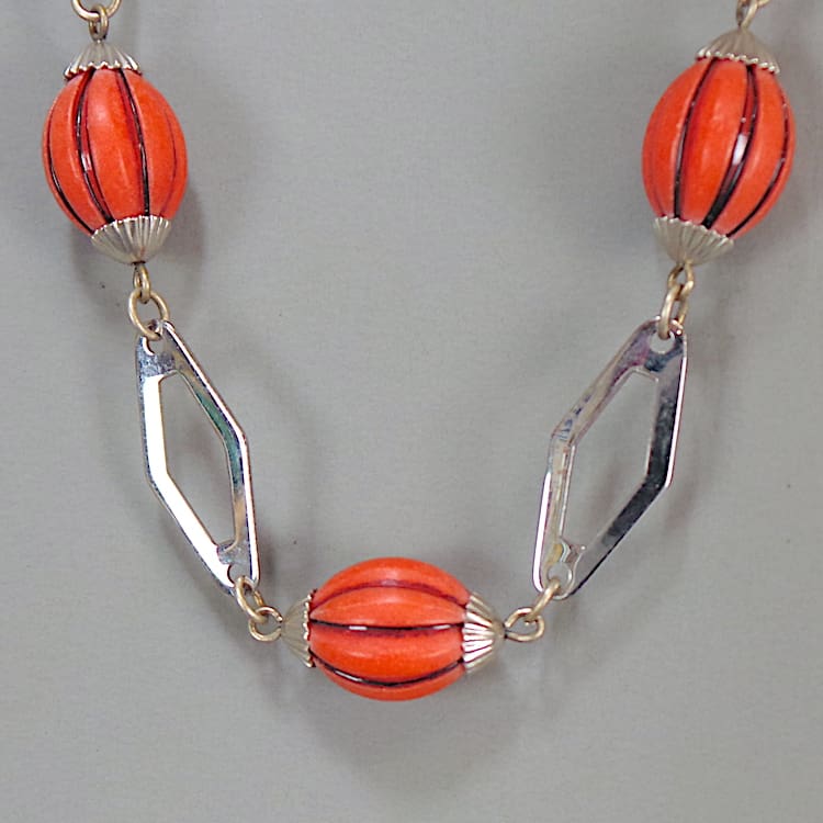 Modernist chrome and peach galalith, made in the early 1930’s by the company of Jakob Bengel.