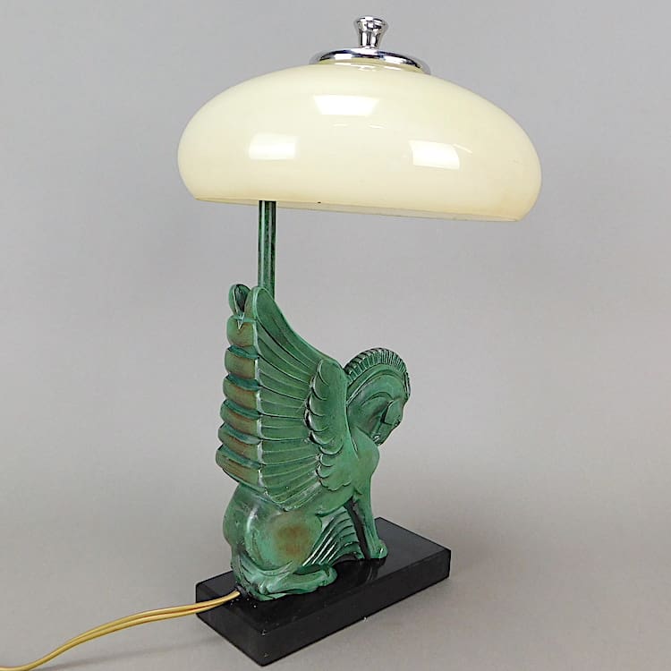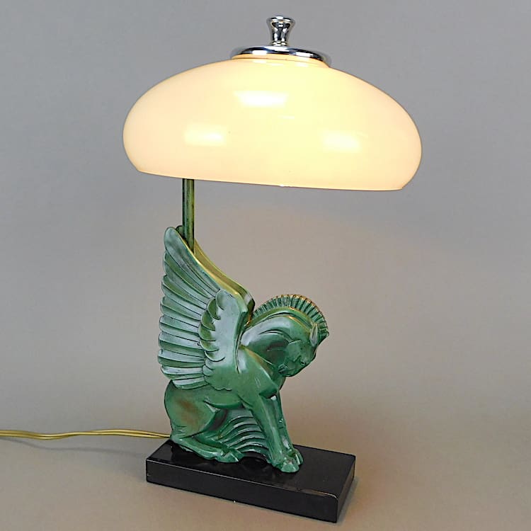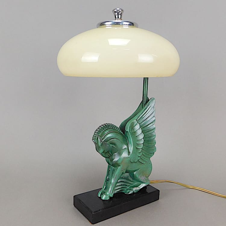 Extremely rare green patinated art metal art deco cubist winged horse by either Le Verrier or Laurent – unsigned