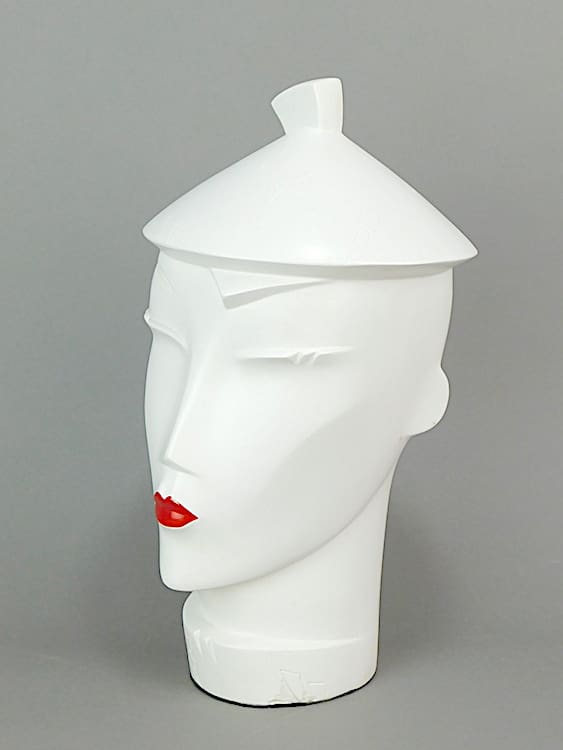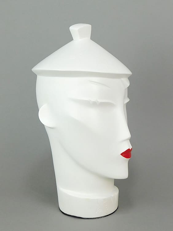 A plaster bust called Peking, white with red hand painted lip detail. Signed to the reverse. Sold with its original box.