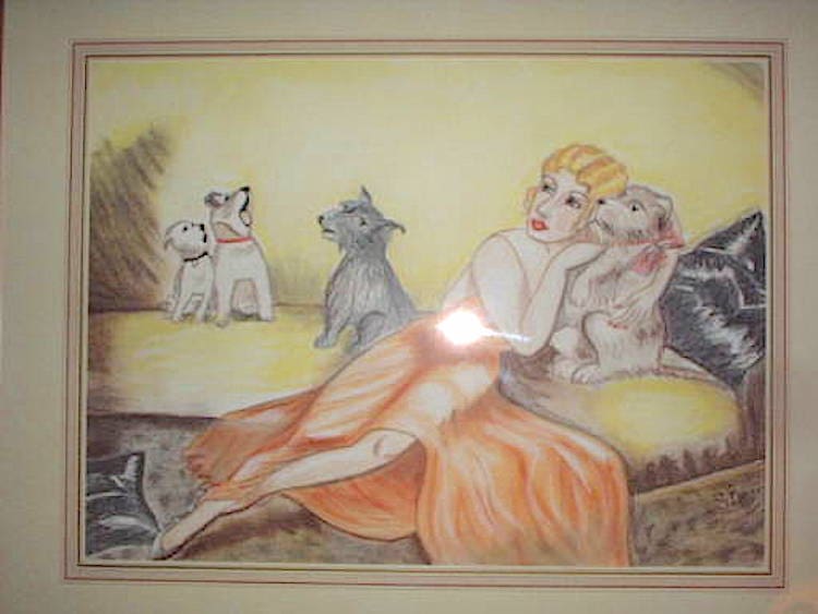 An original A3 pencil drawing by myself, in the Icart style, and framed in a contemporary frame.
