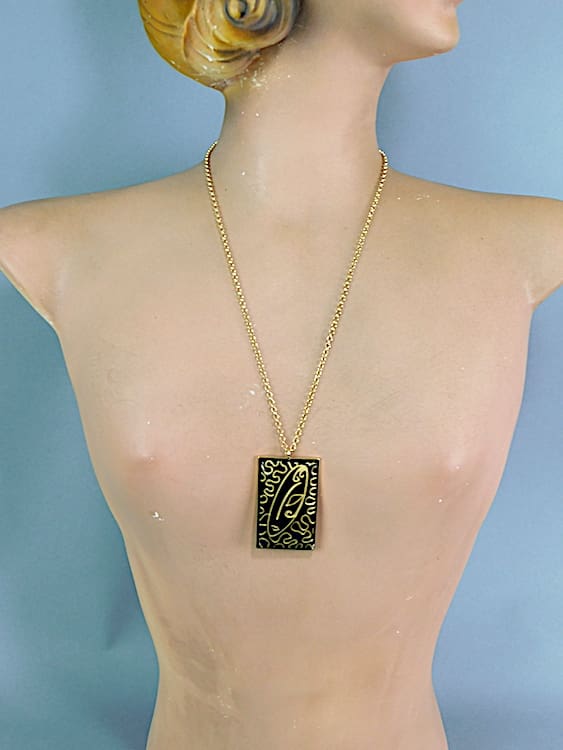 The pendant panel measures 2.25 inches (5.5cm) high, 1.25 inches (3cm) wide and is signed to the back.