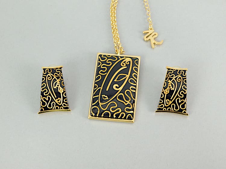 Brown and gold Necklace and matching earrings set. The manhattan face design by ZR.