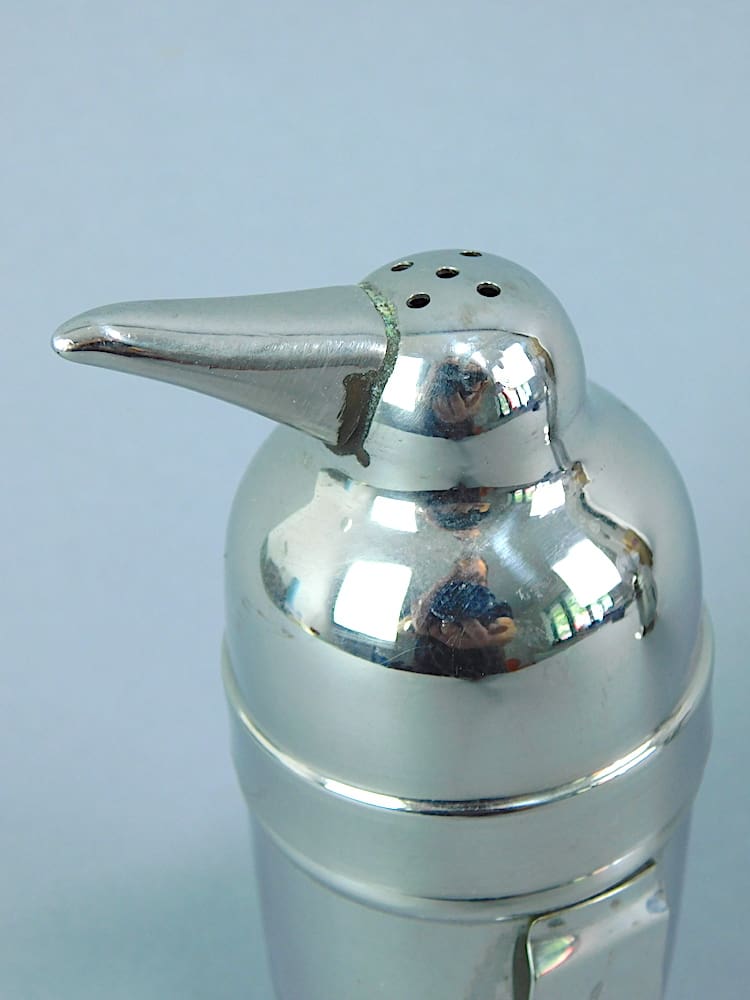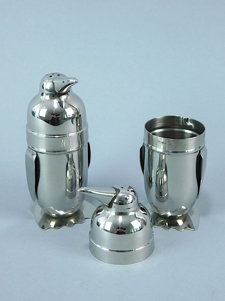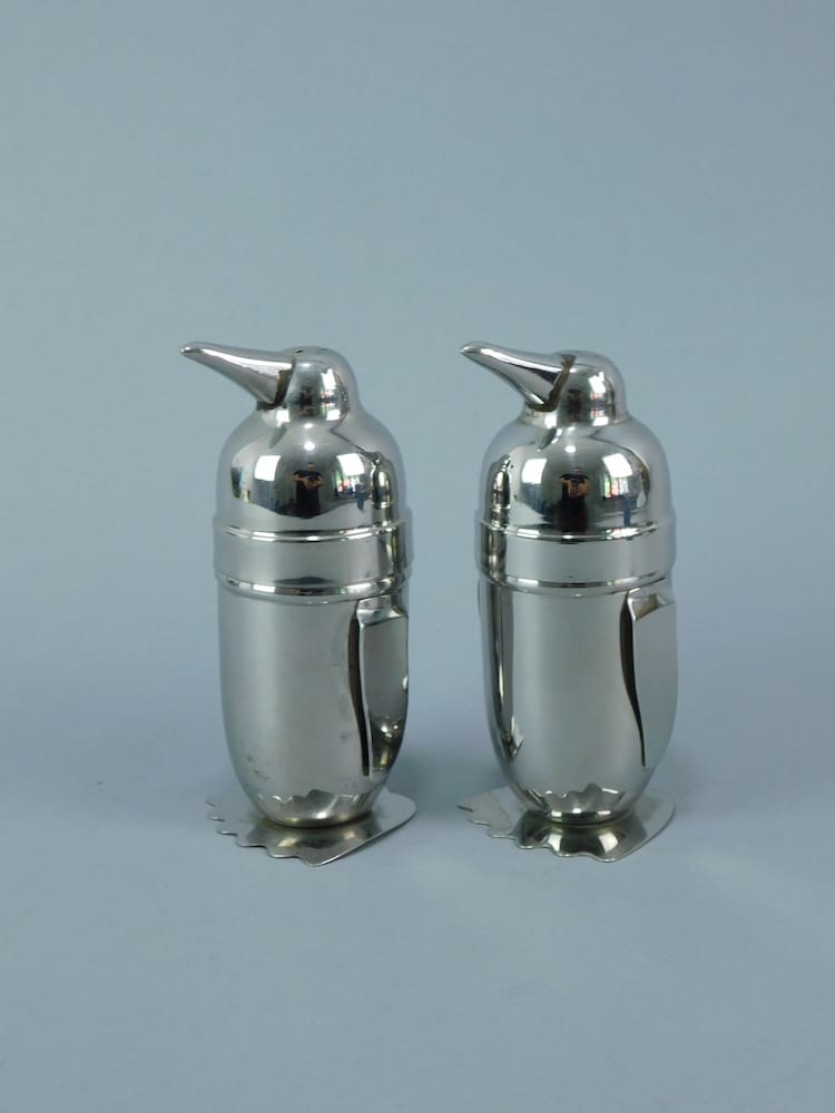 Chromed metal penguin salt and pepper pot.