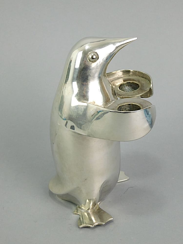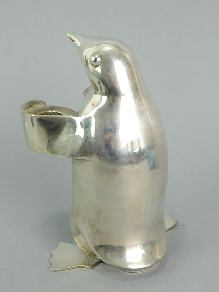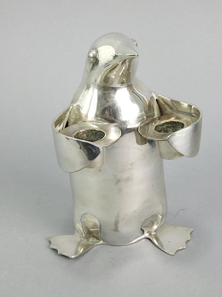 Large stylised chrome plated Penguin double candle stick holder.