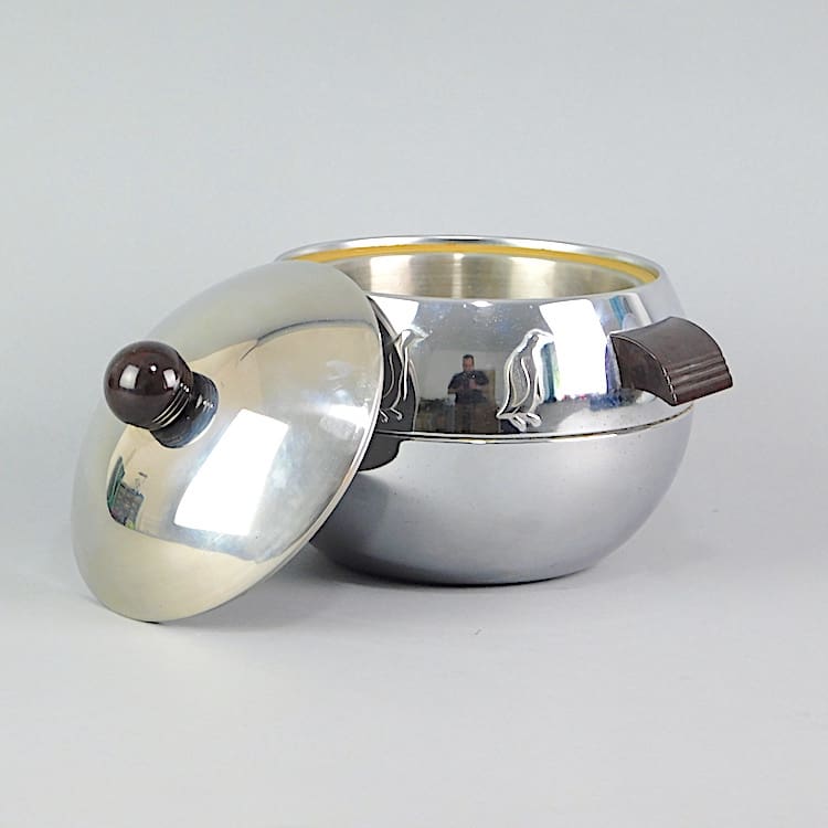 American ice or heat bucket, made by West Bend Aluminium Co. It has bakelite handles and knob.