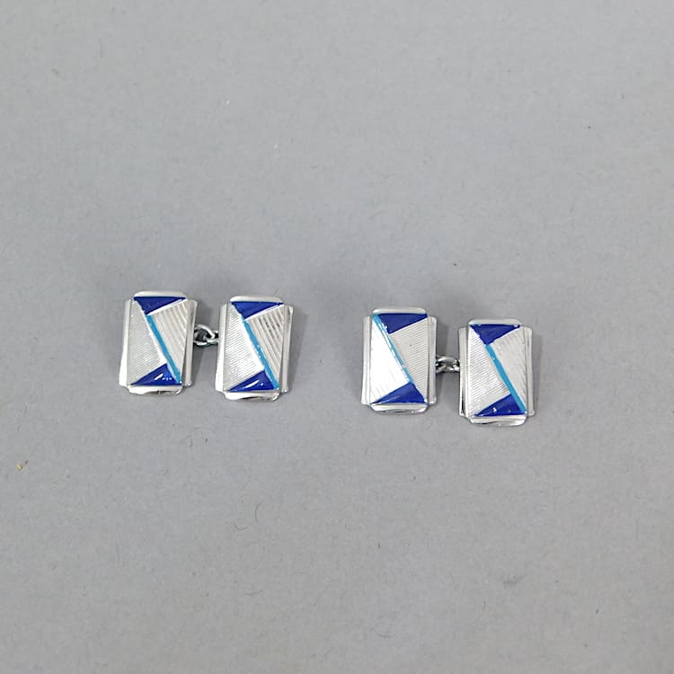 A pair of silvered metal and two tone blue enamelled cufflinks.