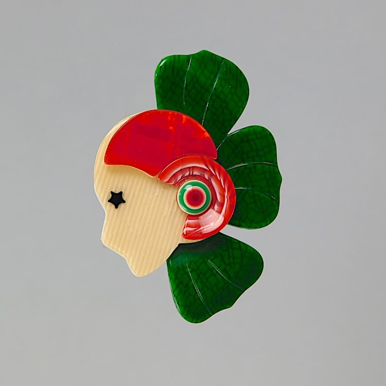 Vintage petal brooch – signed on the safety V clasp. 2.25 inches wide (5.5cm). Ref: The Lea Stein Book p22. In as-new condition.