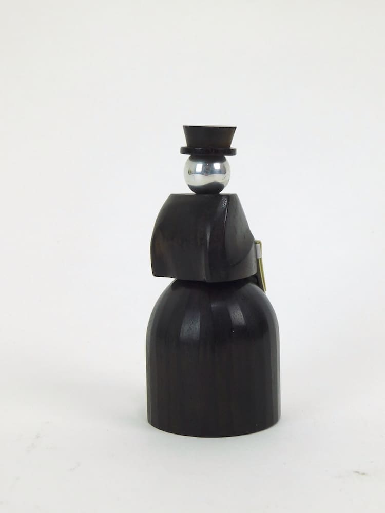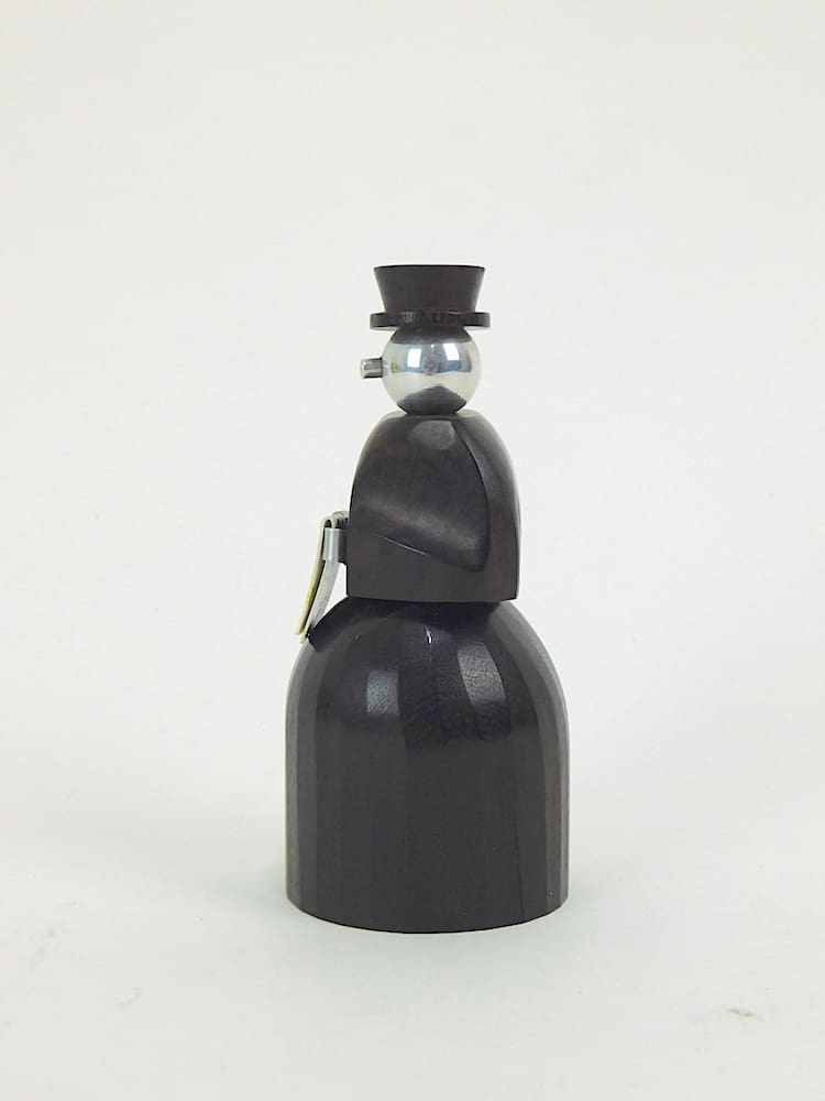A French art deco macassar ebony bodied Peppermill for the Peugeot motor company designed as a man.
