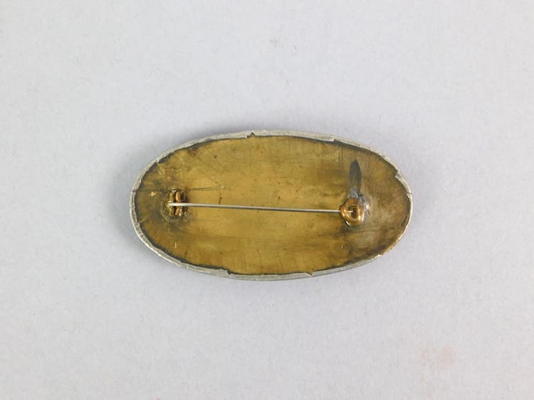 Large original pewter brooch with blue ruskin style stone.