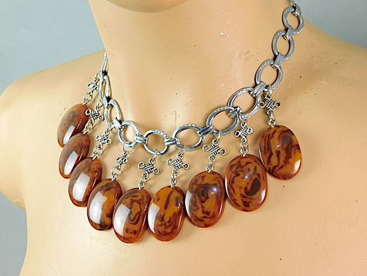American chromed metal and tortoiseshell phenolic bead necklace.