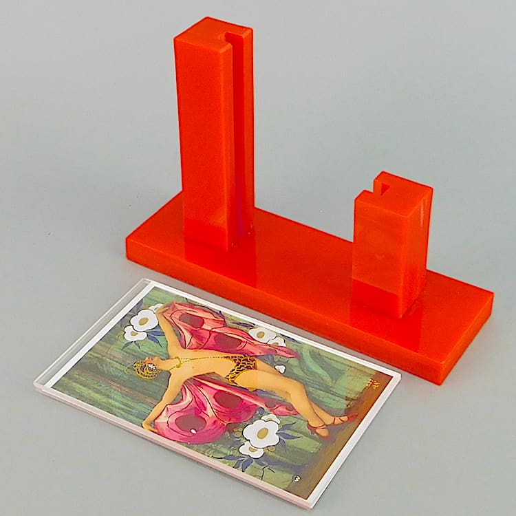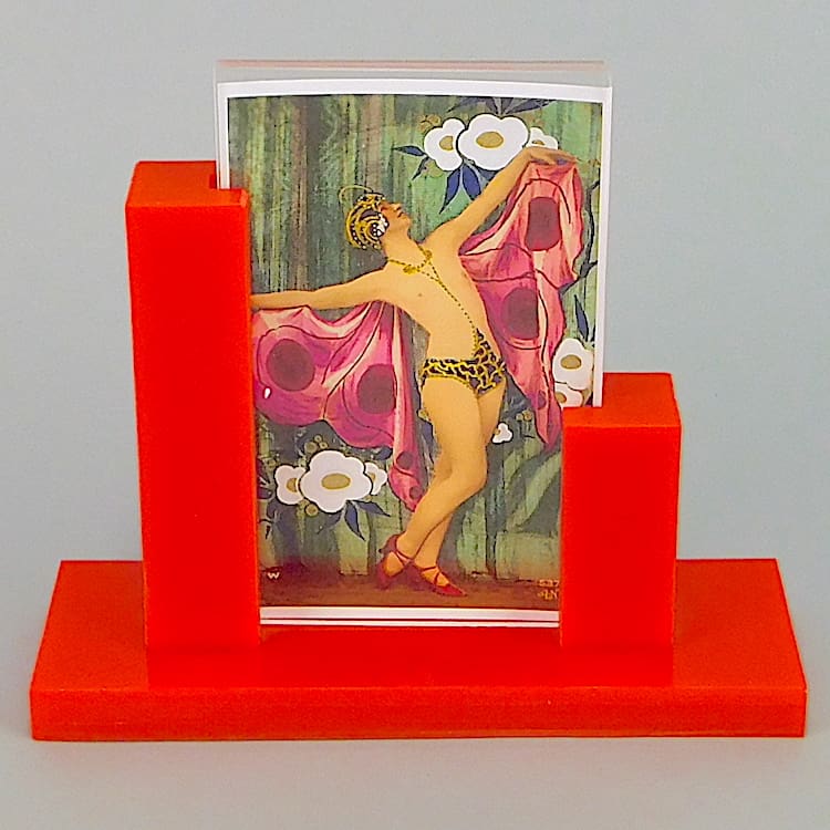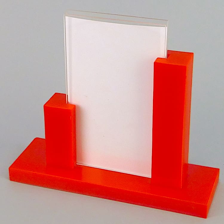 Red asymmetric phenolic photo frame.