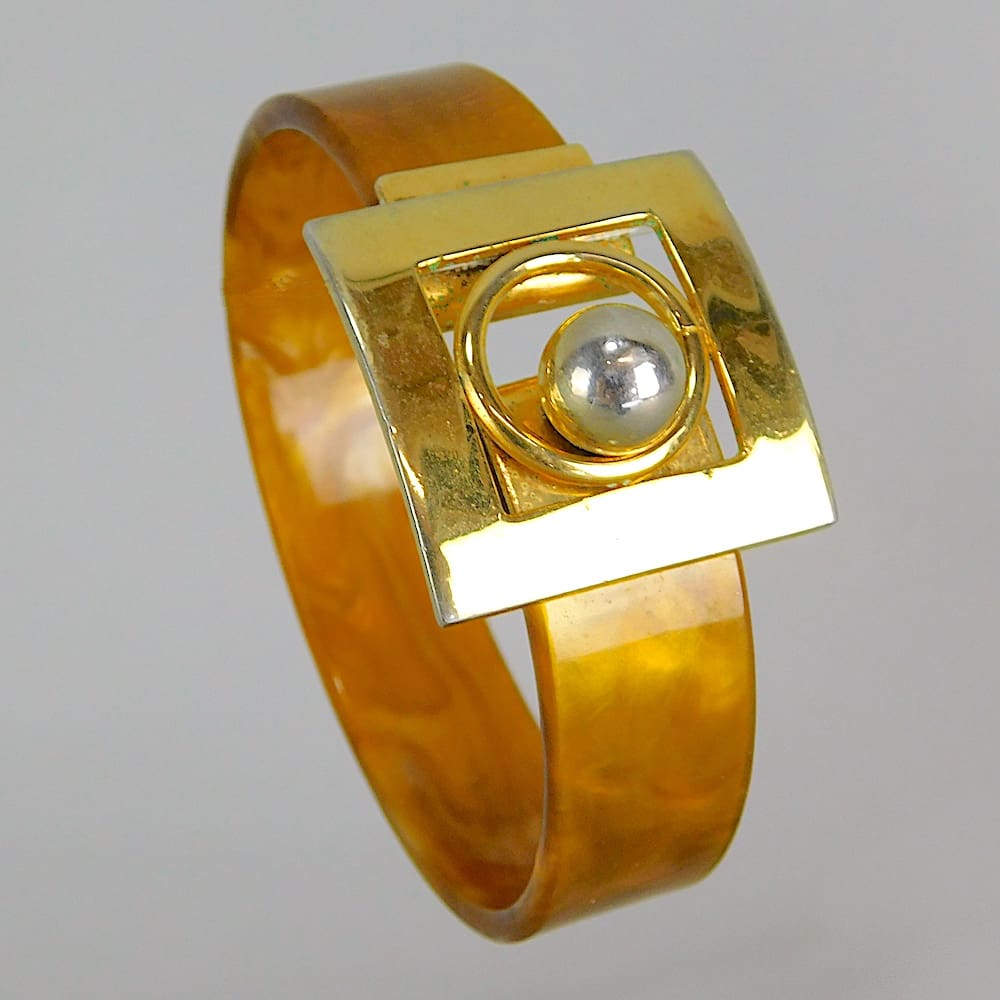 It measures 1 inch (2.5cm) wide to the front metal section and will fit a small to medium sized wrist.