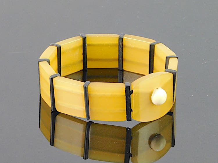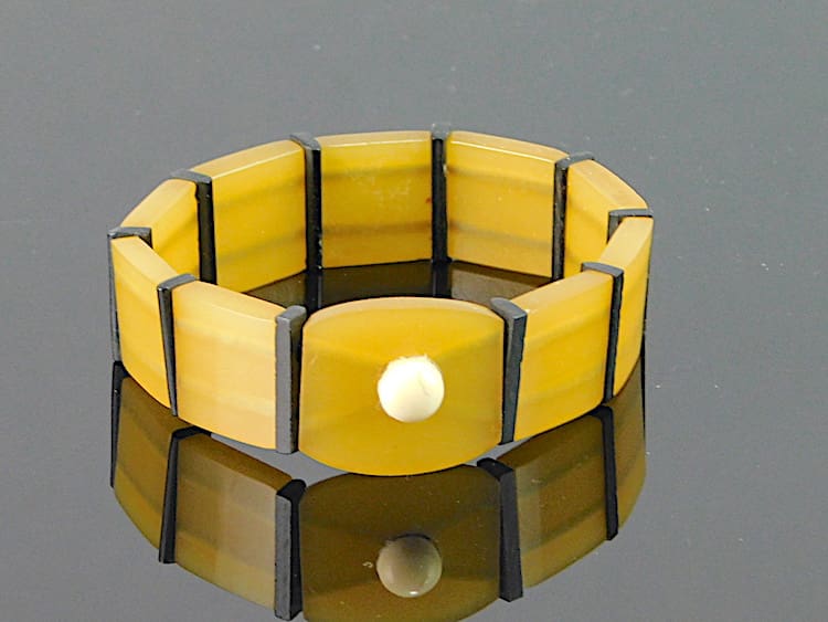 French art deco phenolic elasticated bracelet. It will fit a a small to medium sized wrist.