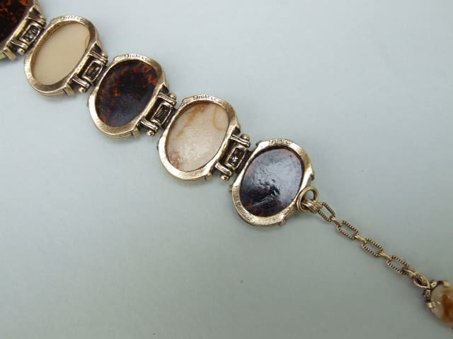 Tortoise shell and cream phenolic panel bracelet, signed Miracle and probably circa 1960.