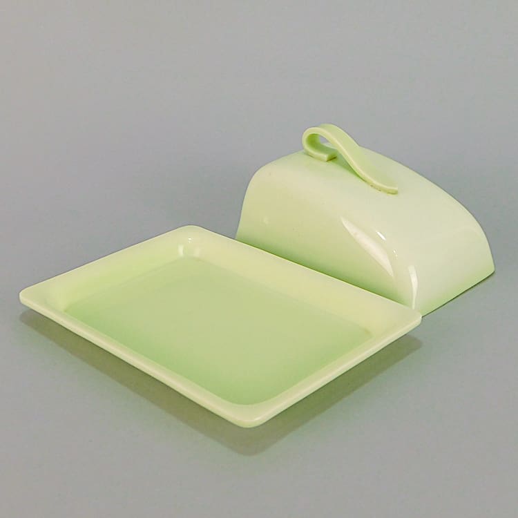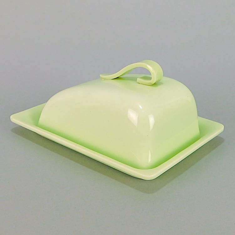 A lime green phenolic breakfast butter dish.