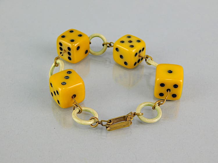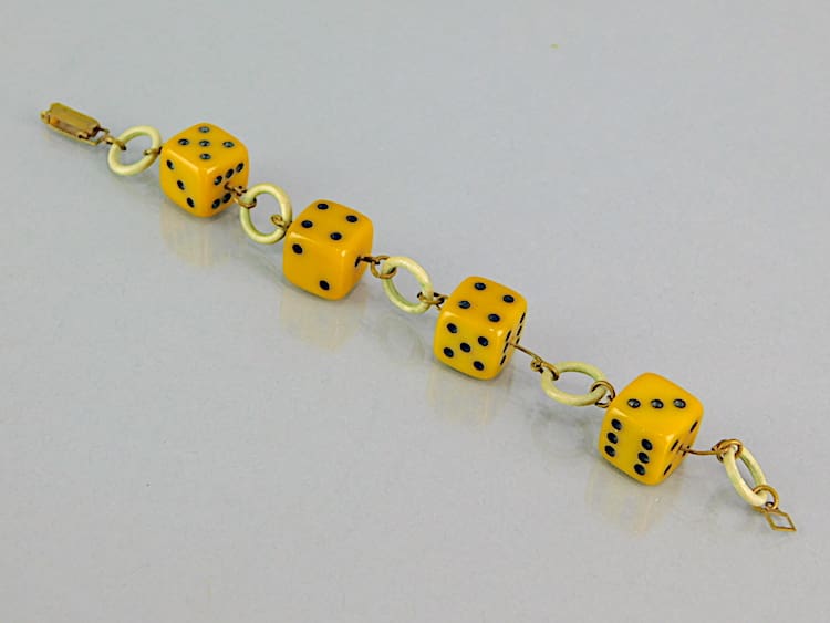 French phenolic dice and ring bracelet. Hand made. It will fit a small size wrist.