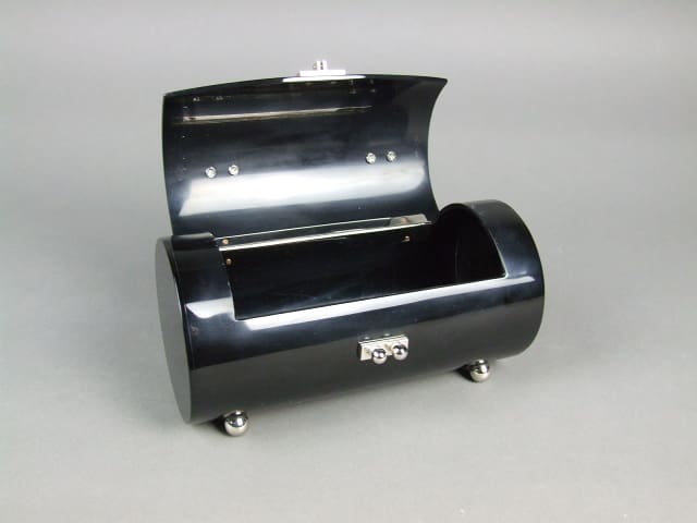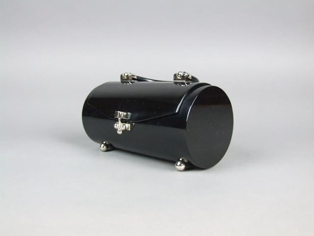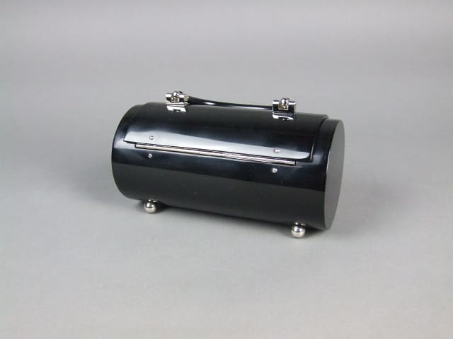 Black tube handbag with chrome detailing. Probably made in the 1970’s.