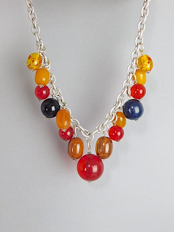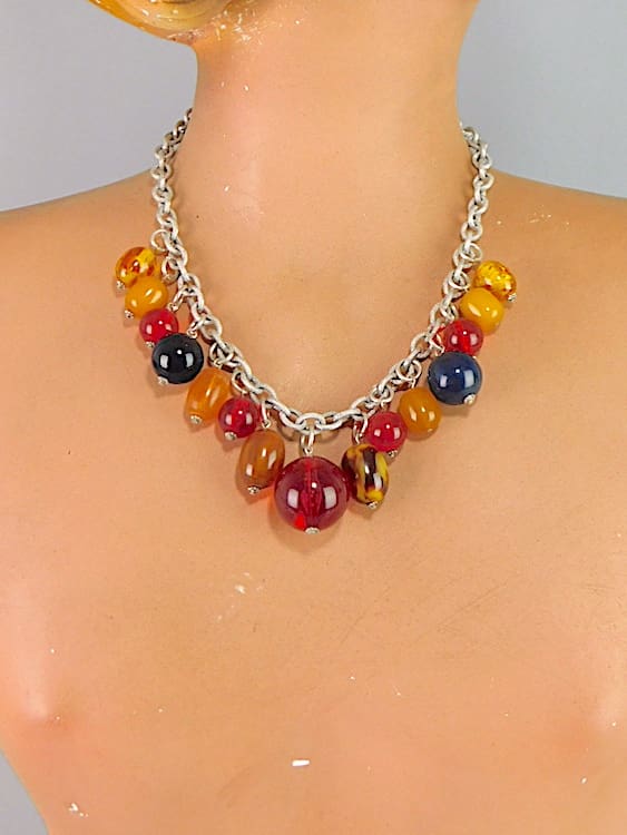This necklace and earrings set is made up of chain phenolic resin beads.