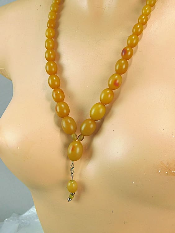 American honey yellow phenolic art deco necklace.