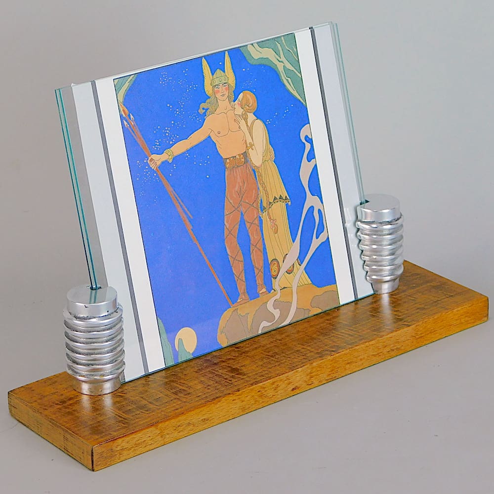 French art deco aluminium and wood photo frame.