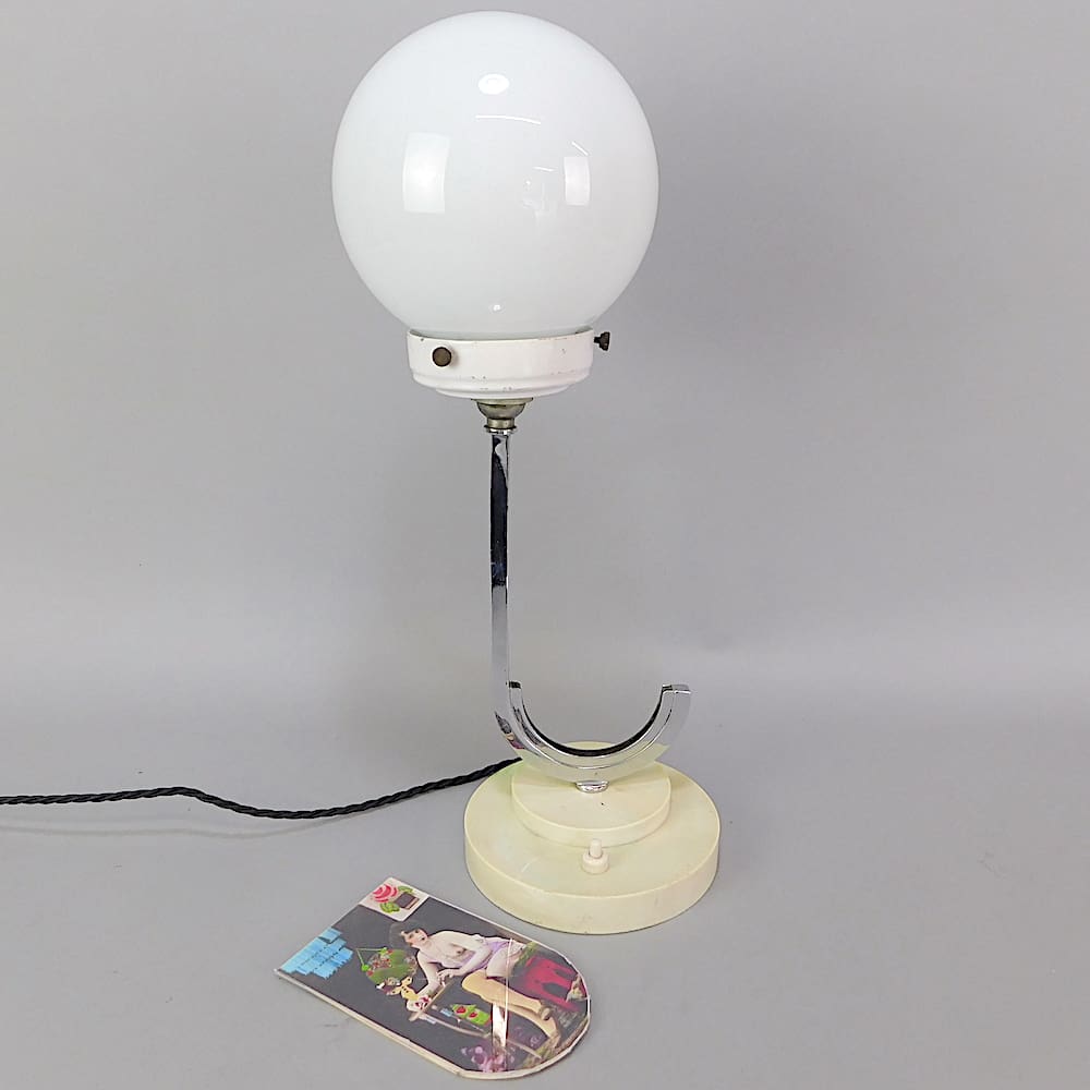 A French chrome art deco desk lamp with photo frame.