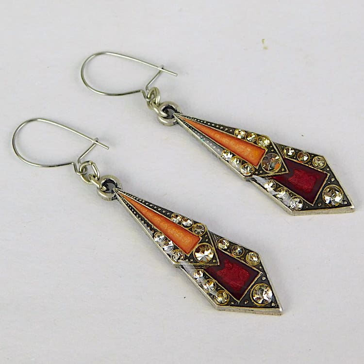 French art deco enamel and diamonte earrings for pierced ears fitted with a silver safety clasp.